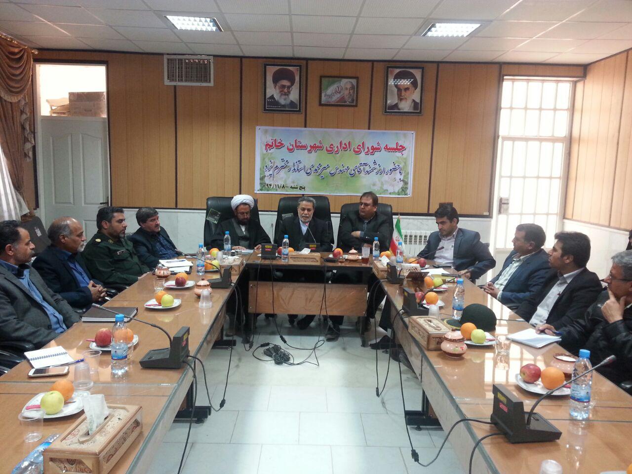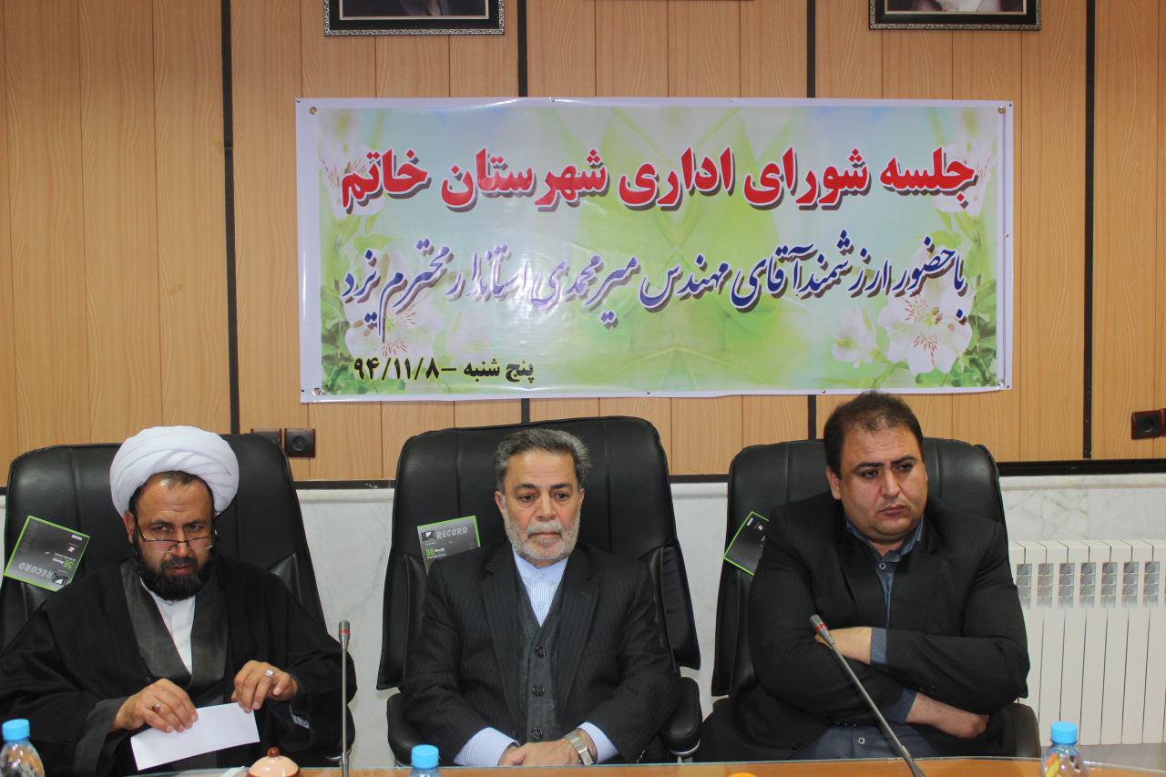 فرماندار خاتم نیز در این نشست با اشاره به اینکه طرح های عمرانی در شهرستان فعال است و مردم همگرایی خوبی دارند تصریح کرد: کارگروهایی که در این شهرستان وجود دارد رتبه های برتر در زمینه های آموزشی ، ورزشی ، بسیج سازندگی و امور زیر بنایی در استان داشته اند .
