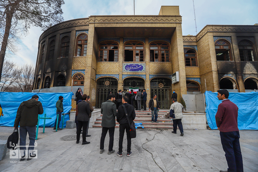بازدید خبرنگاران از خسارات وارده به ساختمان شهرداری یزد
